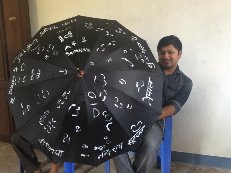 物資を渡した村の方々には、傘へ『ニコニコマーク』を描いていただきました。不思議と和やな空気が流れ、私たちも村の人たちも笑顔がありました。