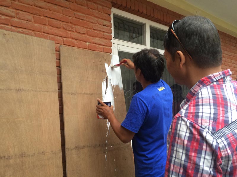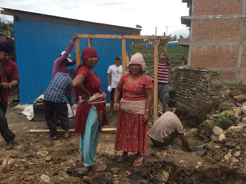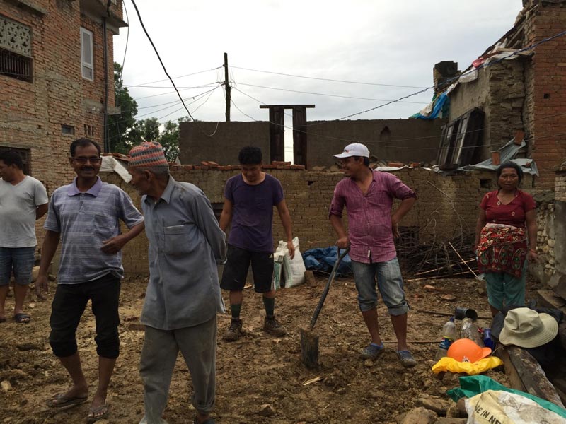 ゼロから作る作業。みんなで朝から晩まで作業しました。家を失った手作りの架設の家で、話をきいたり、チャイをいただいたり。大変な状況の中、一つのアクションを通じて活気が生まれた気がしました。